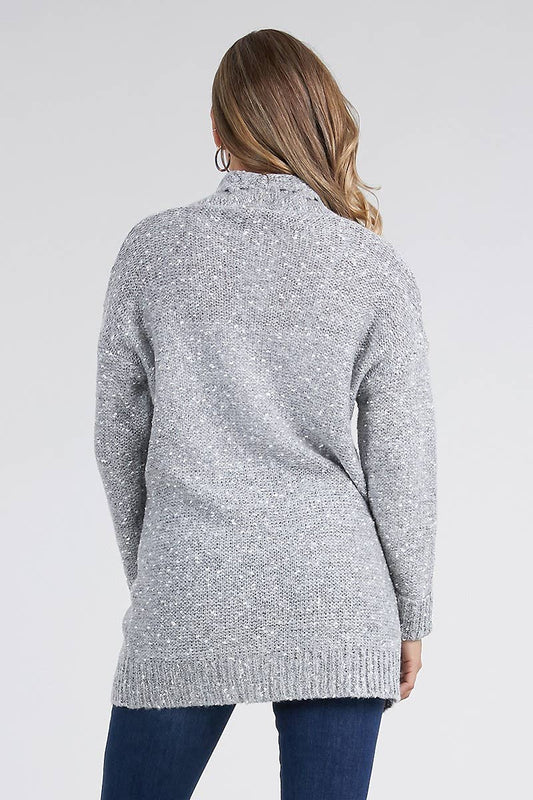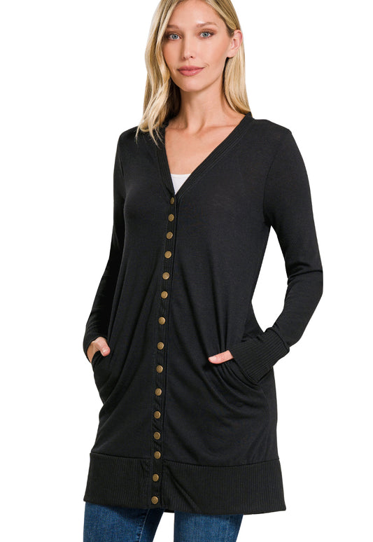 Thigh-Length Snap Button Cardigan with Ribbed Detail | FINAL SALE