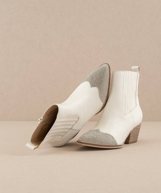 The Zuri White | Western Bootie with Rhinestone Toe FINAL SALE