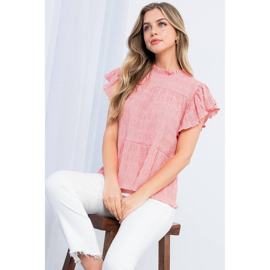 Smocked Peplum Blouse with Ruffle Sleeves
