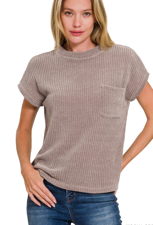 Chenille Waffle Short Sleeve Sweater