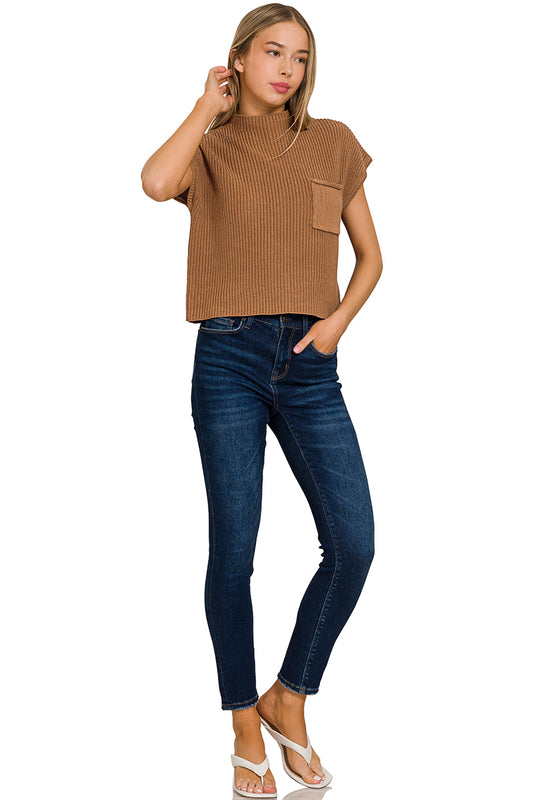 Mock Neck Short Sleeve Cropped Sweater