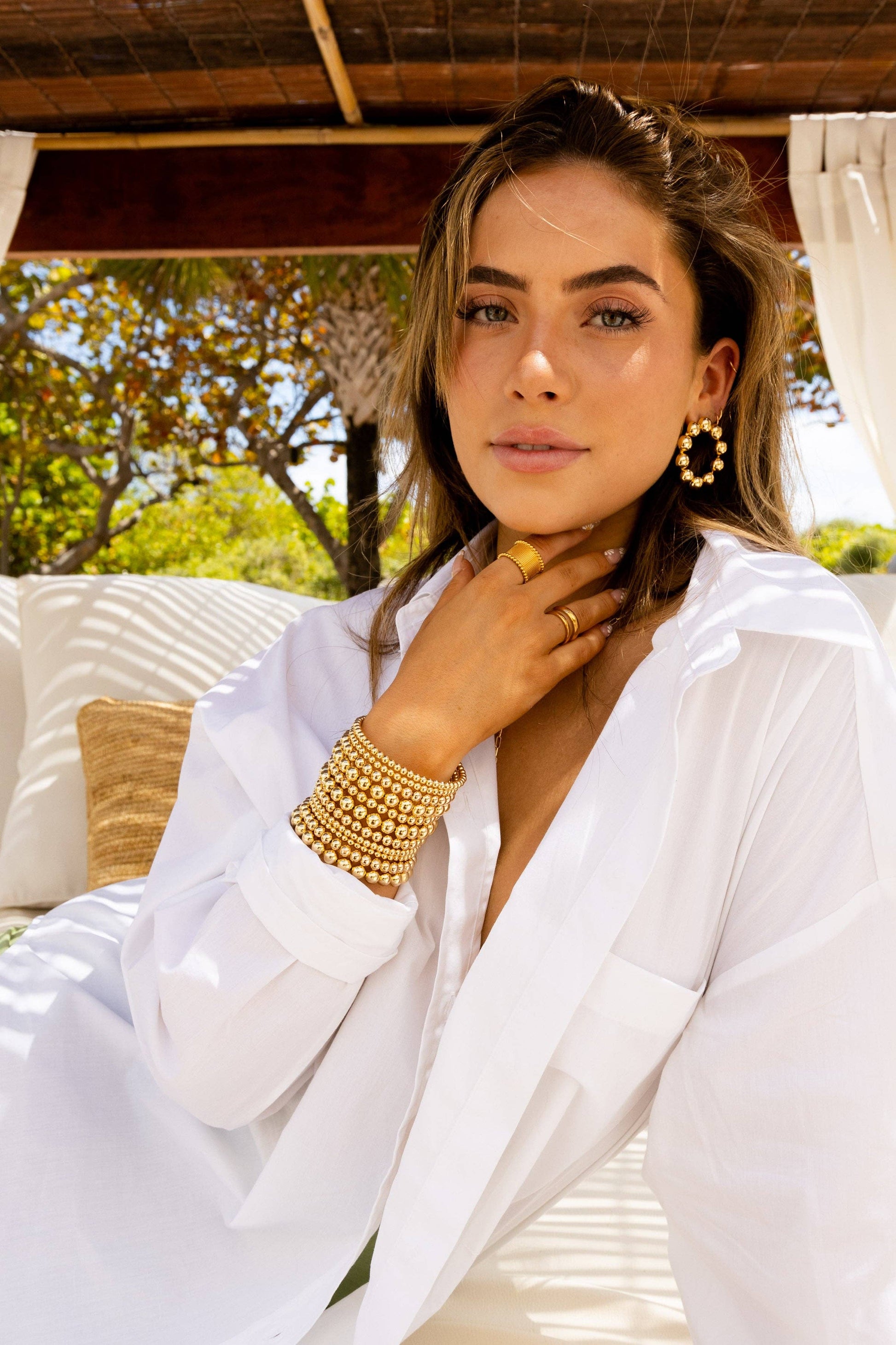 Make them stop and stare in our Lolita Earrings. The perfect statement earring to go with any day or nighttime outfit & pairs well with our Allison Beaded Wrap Bracelets.